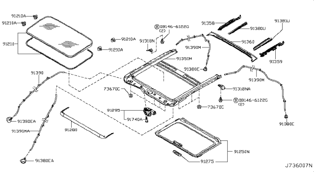 Infiniti EX35 parts. Parts like Sun Roof Parts are shipped directly from authorized Infiniti dealers and backed by the manufacturer's warranty. Parts fit for the following vehicle options. Engine: 6 Cyl 3.5L, 6 Cyl 3.7L. Grade/Trim: Base, Leather.